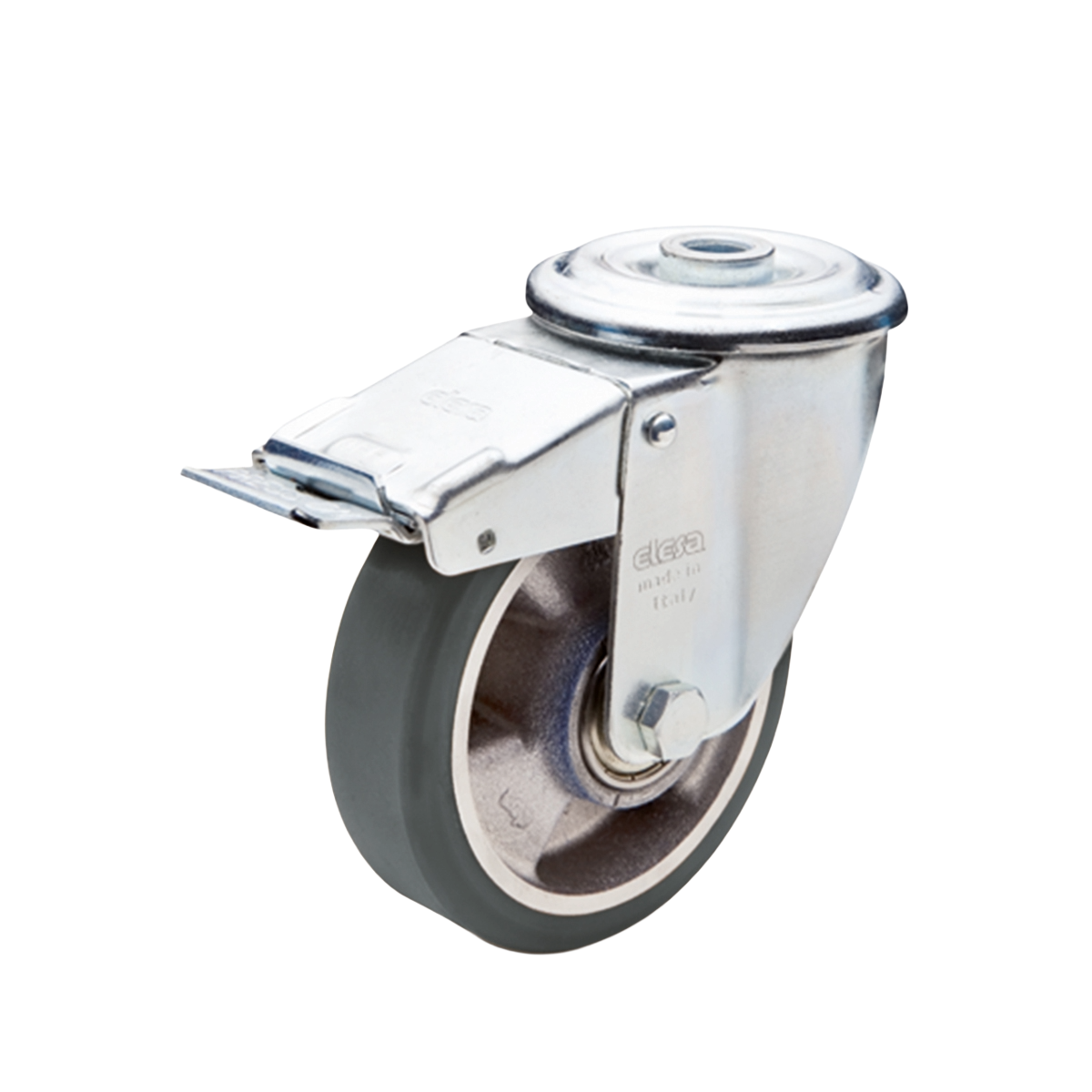 E+G Transporthjul, Drejelig m/hul m/bremse